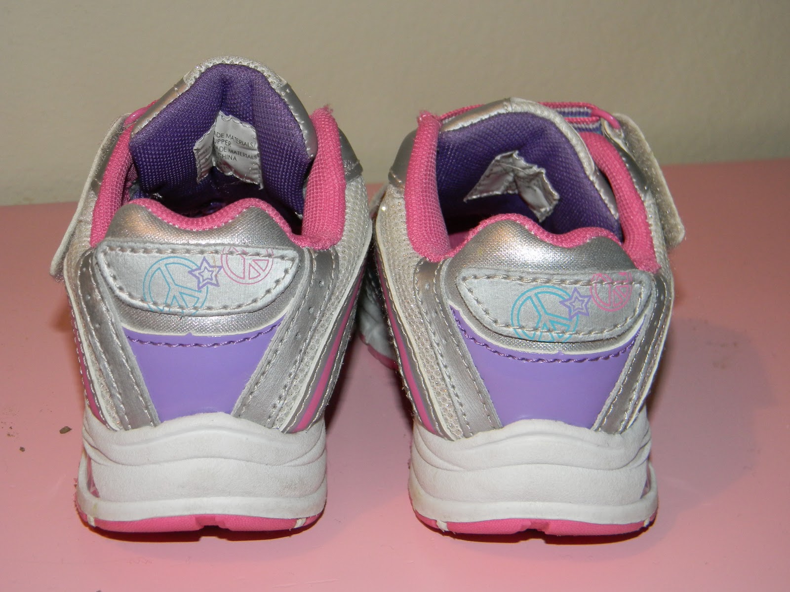 I have to admit that I am proud they're not completely pink. However, what they lack in overly girlish colors they make up for in sparklys. You may not be able to tell from the picture but these shoes are covered in glittery sparkles. So if you touch them you too have the pleasure of being glittered.